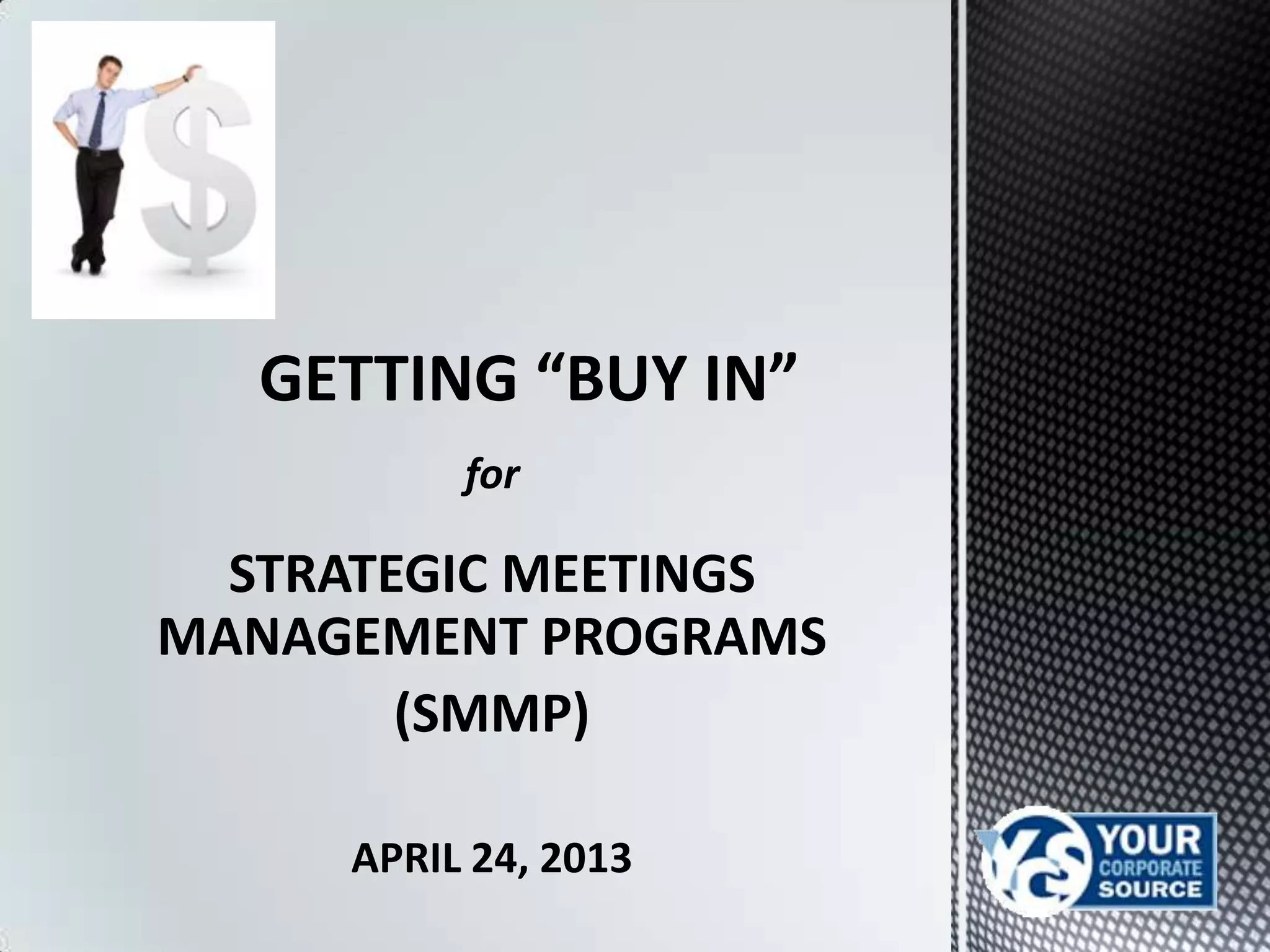 The document outlines strategies for gaining stakeholder buy-in for strategic meetings management programs (SMMP). It highlights the importance of identifying unique stakeholder needs, establishing an advisory council, and maintaining effective communication to ensure support for the initiative. Additionally, it emphasizes projecting realistic timelines and budgets while clearly articulating the benefits linked to overall business goals.