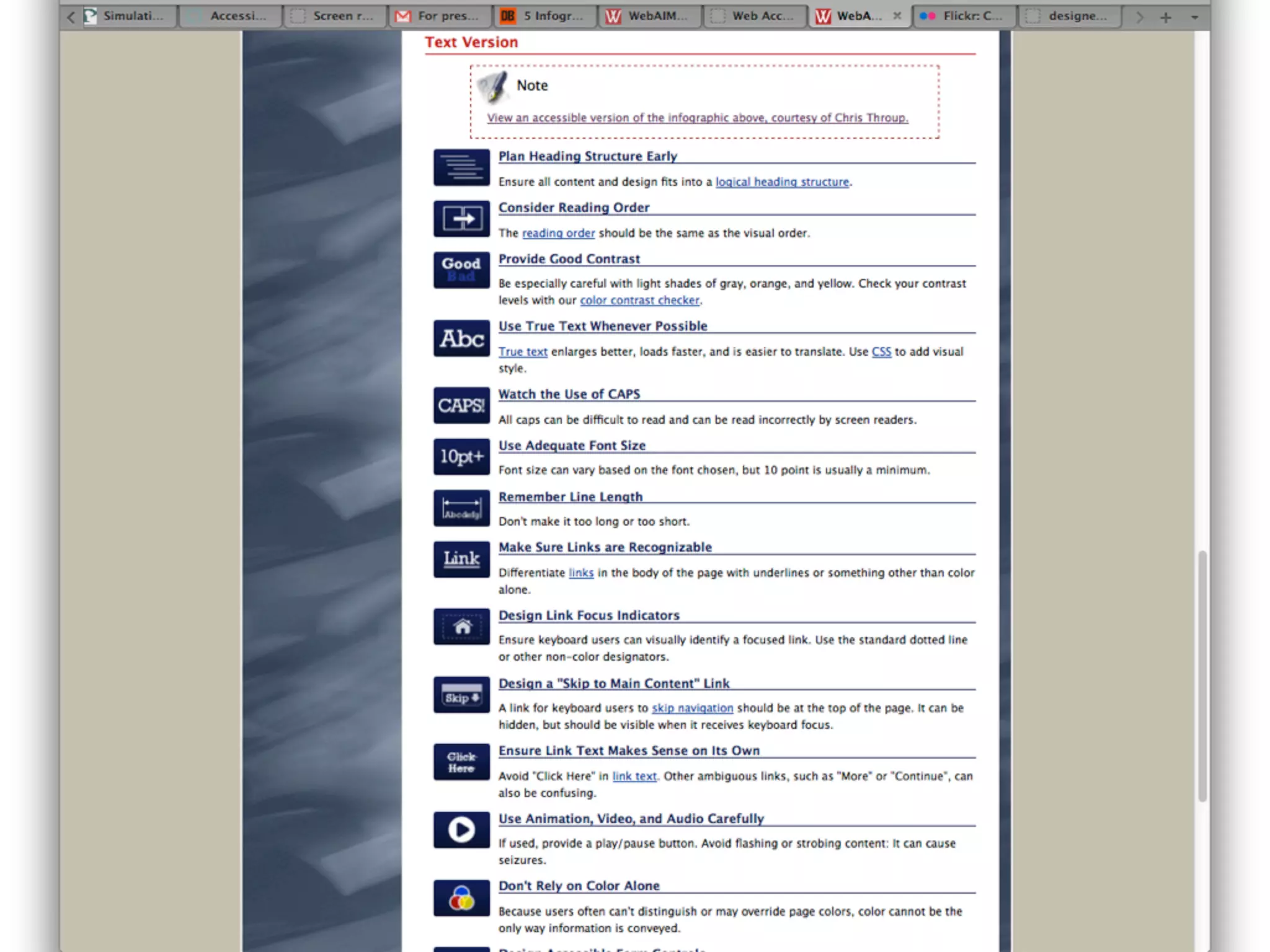 The document discusses accessibility and usability in web design, emphasizing the importance of creating inclusive digital content. It offers various resources, techniques, and guidelines for implementing Web Content Accessibility Guidelines (WCAG) 2.0, as well as practical advice for keyboard navigation, color contrast, and clear language. Additionally, it highlights the need for user testing and provides links to tools and standards for evaluating web accessibility.