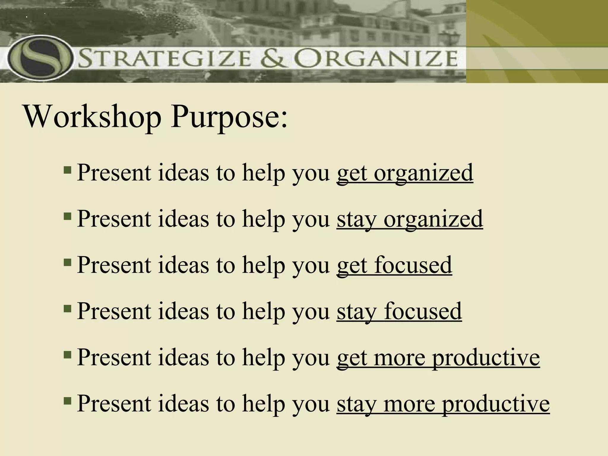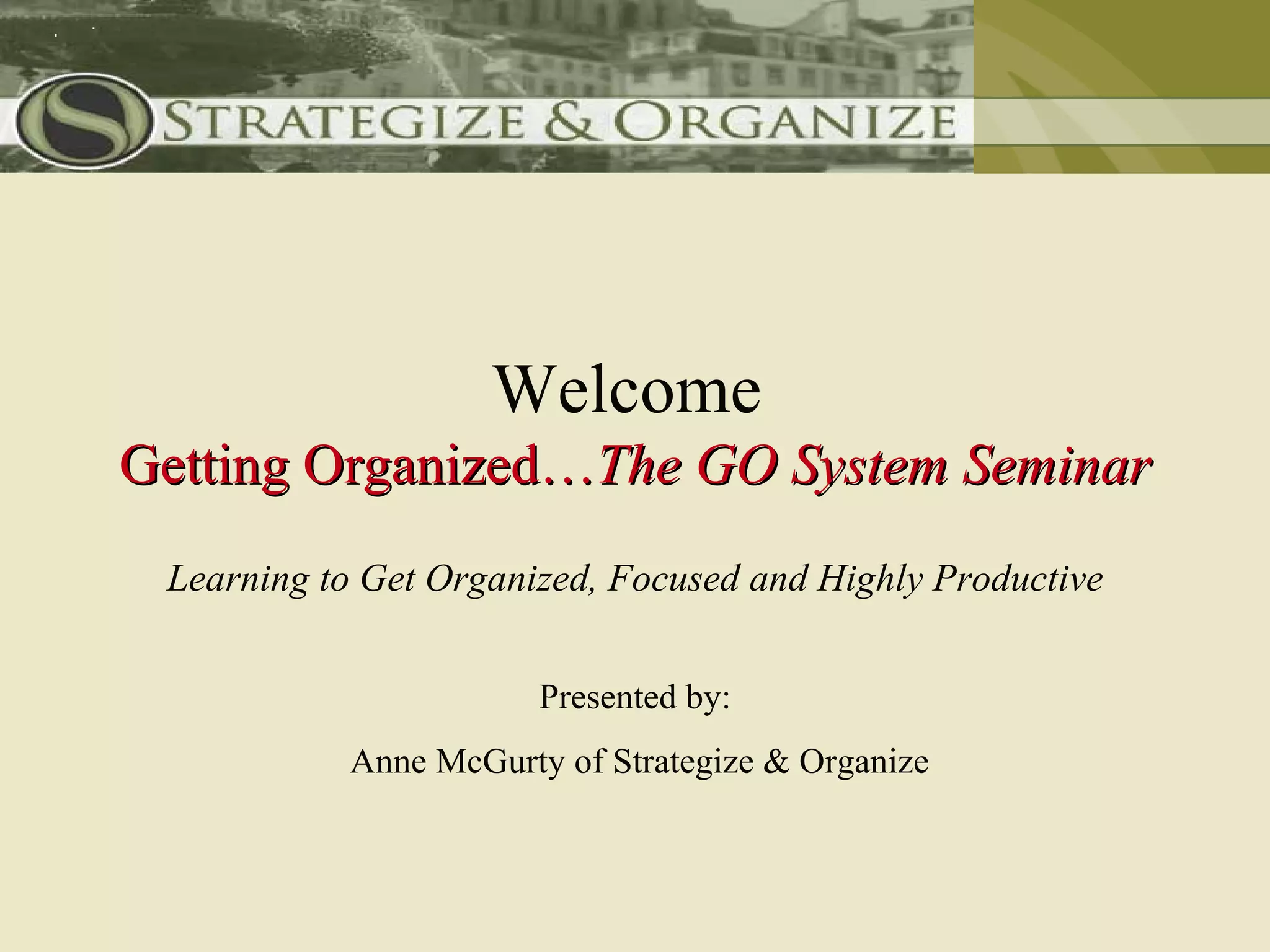 The document outlines a seminar presented by Anne McGurty focusing on organization, productivity, and effective time management strategies. It covers various methodologies including the 'GO System' for organizing information and the DISC model for understanding personality types. Key themes include overcoming barriers, implementing effective habits, and the importance of maintaining an organized environment to enhance personal and professional productivity.