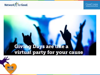 The document outlines strategies and insights for preparing for Giving Tuesday 2014, focusing on a Baltimore campaign that raised $5.7 million in support of local nonprofits. Key components include setting ambitious goals, engaging community partners, and utilizing social media to maximize outreach and participation. The document emphasizes the importance of leadership, branding, and creative fundraising tactics to create a successful giving campaign.