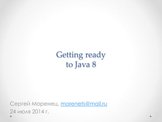 This document discusses the key features and timeline of Java 8. Some of the major additions in Java 8 include lambda expressions, default methods, streams API, date and time API improvements, and Nashorn JavaScript engine. Java 8 was influenced by Scala and aimed to add functional programming features to Java like lambda expressions and default interfaces. It had a development timeline from 2012 to 2014 final release.
