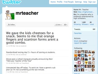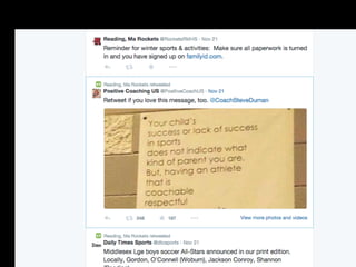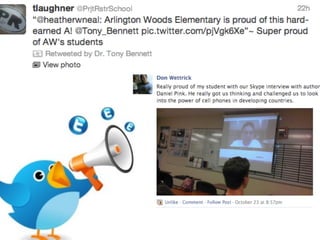 The document discusses the significance of passion-driven, social-centered connections in community building and communication strategies through social media. It emphasizes the importance of storytelling for brands and engaging audiences to enhance their awareness and participation. Additionally, it provides practical tools and examples for teachers and parents to effectively communicate and collaborate in educational settings.