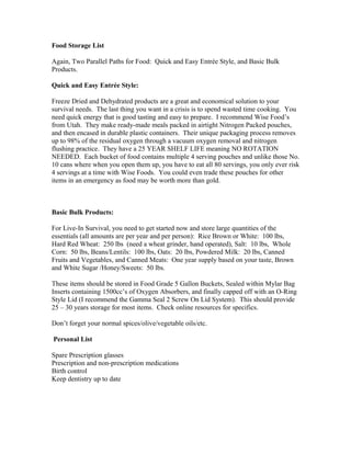 Getting Prepped.com provides a checklist to help readers prepare for emergencies by obtaining a one month supply of food and water, then increasing it to three, six, and twelve months. The checklist includes supplies in two categories: quick and easy meals as well as bulk staples with a long shelf life. A second checklist covers first aid, hygiene, shelter, tools, clothing and optional firearms for self defense. Readers are encouraged to break preparations into parallel paths for basic survival needs and "survival enablers" to protect their family through difficult times.