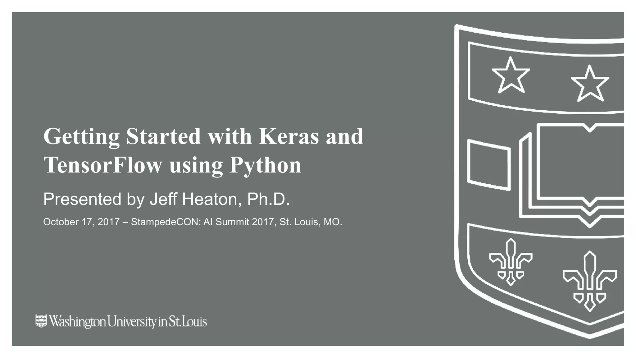 The document is a presentation on getting started with Keras and TensorFlow for deep learning, presented by Jeff Heaton at the AI Summit 2017. It covers topics including the deep learning framework landscape, various types of neural networks (CNNs, RNNs), classification, regression tasks, and practical implementations using Python tools like Keras and TensorFlow. Additionally, it provides code examples for building models and discusses the challenges of preparing real-world data for predictive modeling.