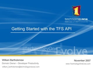 This document provides an overview of programmatically controlling TFS using .NET APIs and web services. It discusses connecting to TFS, accessing different services like source control and work item tracking, and provides examples of common scenarios like starting builds, retrieving files from source control, and creating work items.