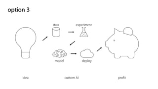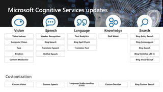 The document describes the features and capabilities of Visual Studio Tools for AI, an AI developer tool for training models and integrating AI into applications. It can create deep learning projects with frameworks like TensorFlow and CNTK, debug and iterate quickly in Visual Studio. It is integrated with Azure Machine Learning for management of experiments and models, and can scale out training with Azure Batch AI. The tool allows monitoring of training, visualization with TensorBoard, and generation of code from trained models.