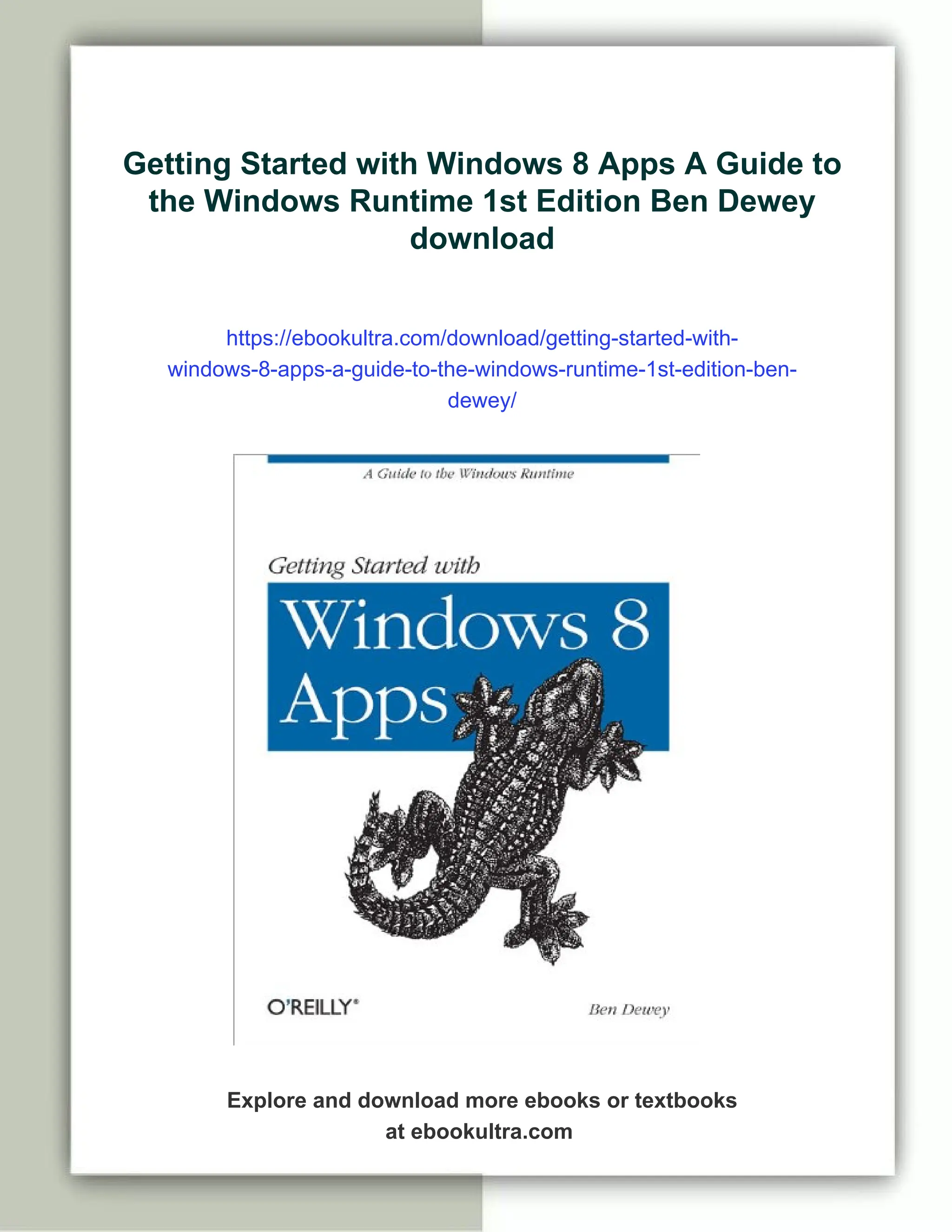 Getting Started with Windows 8 Apps A Guide to the Windows Runtime 1st Edition Ben Dewey