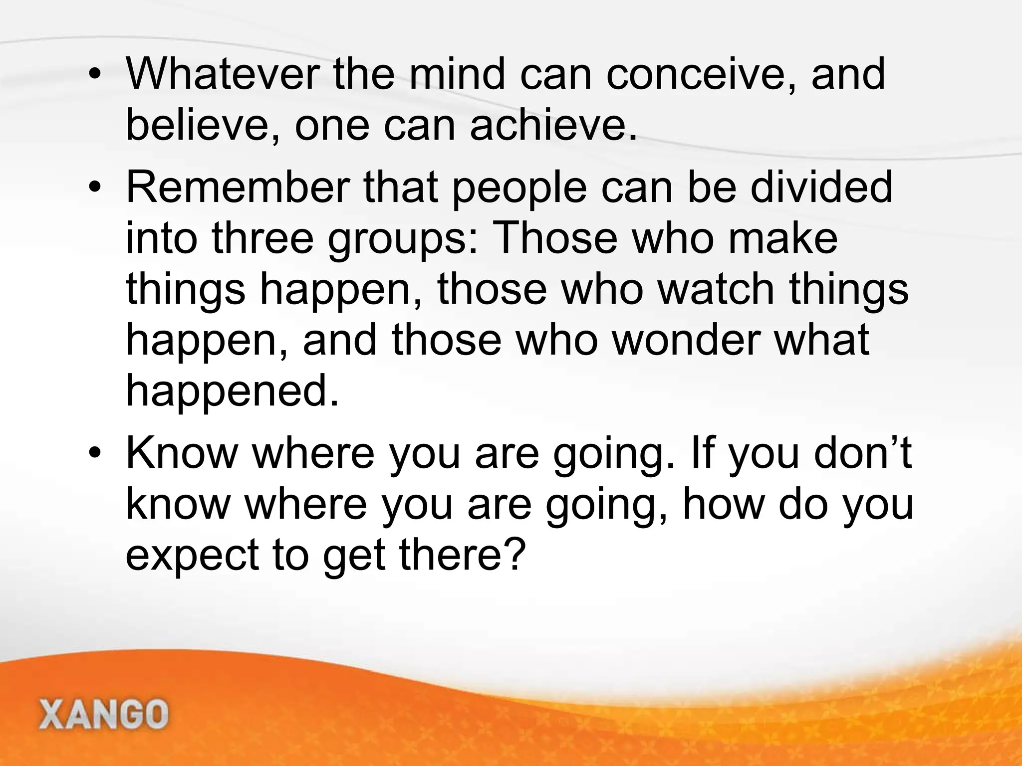1) Set clear goals and have a vision for where you want to be in 1 year, 90 days, weekly, and daily to stay focused on building success.