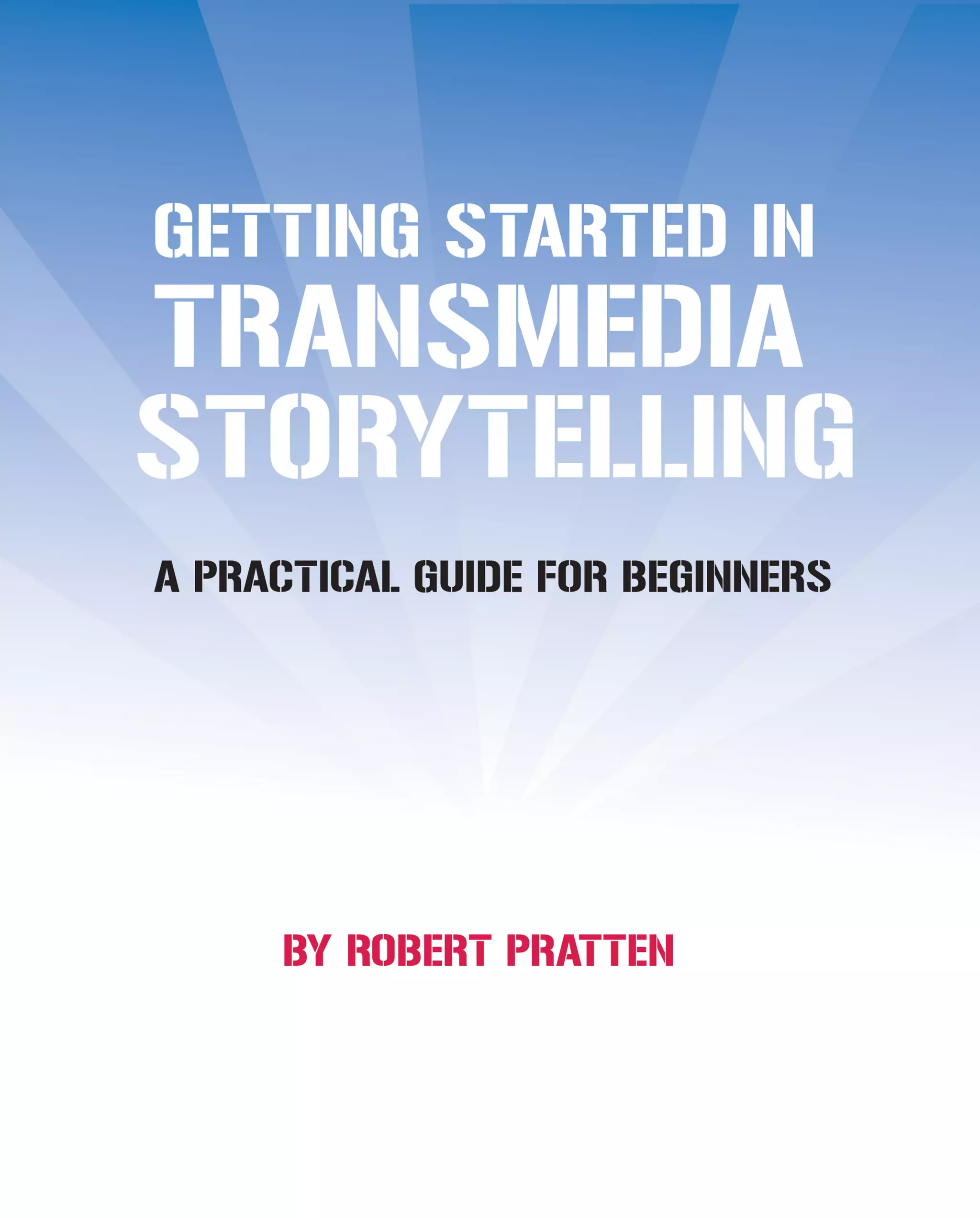 This document provides an introduction to transmedia storytelling. It discusses developing transmedia entertainment by focusing on the story-experience relationship, identifying target audiences, selecting appropriate platforms, and determining a business model and release schedule. It also covers documenting the storyworld, engaging audiences through various media, financing options like crowdfunding and branded sponsorship, and creating a viral video strategy. The overall aim is to help readers understand how to plan, develop and execute an effective transmedia story.