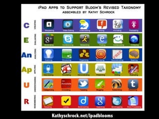 4) Use apps like Skitch for annotating, StoryKit to turn chapters into movies, and Voicethread for reflecting on themes. Assessing with rubrics helps evaluate students' work.