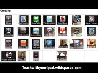 This document provides suggestions for using iPads to get students excited about reading. It suggests apps and activities such as having students: