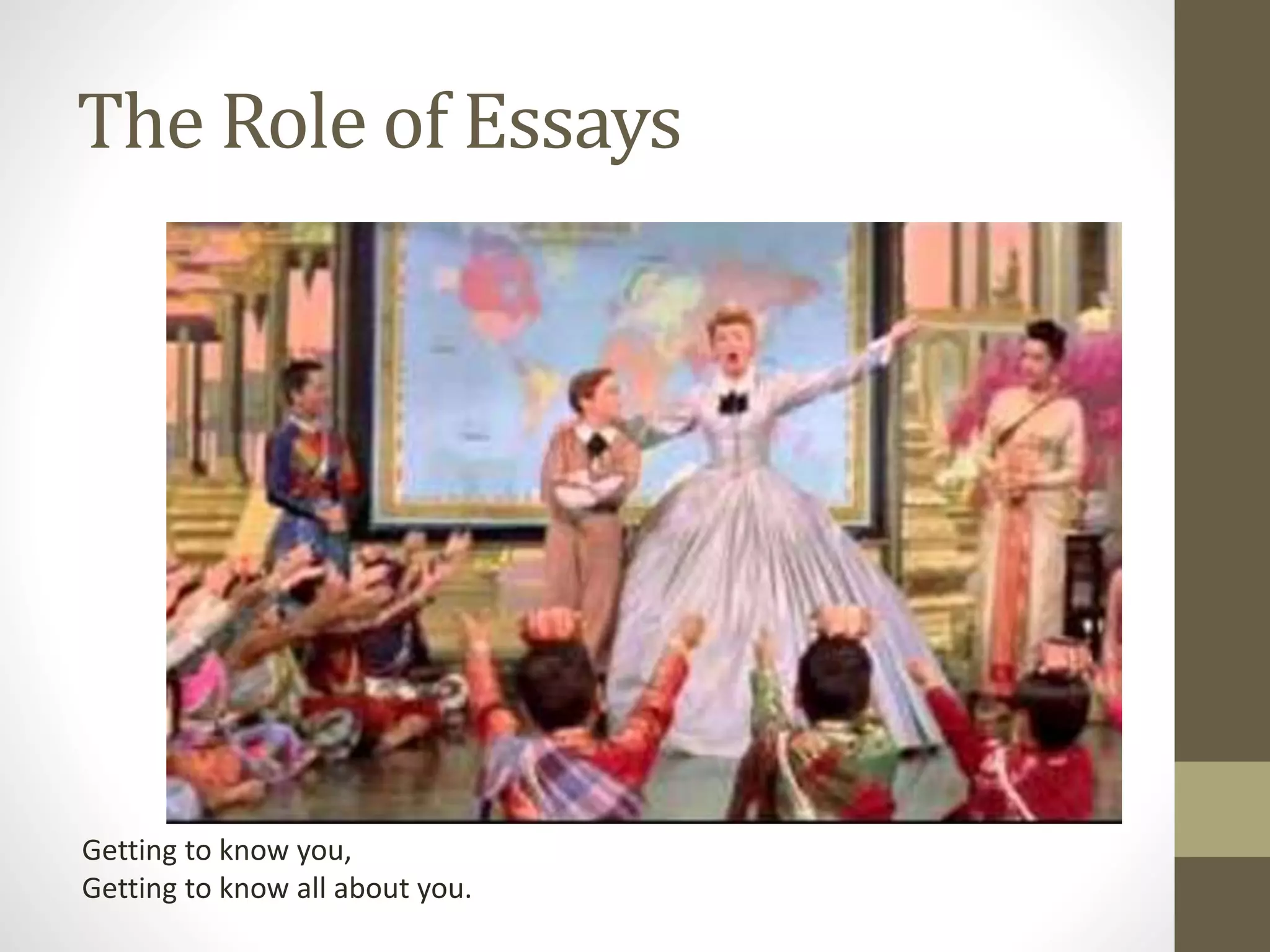 This document provides information about college application essays, including the purpose and role of essays in the application process. It discusses how essays are one part of an applicant's overall application and gives examples of current prompts from the Common Application. The document also includes a sample personal essay response and discusses how additional essays may differ between colleges, using the University of Southern California and University of California as examples. It provides sample responses to some of USC and UC's supplemental essay prompts.