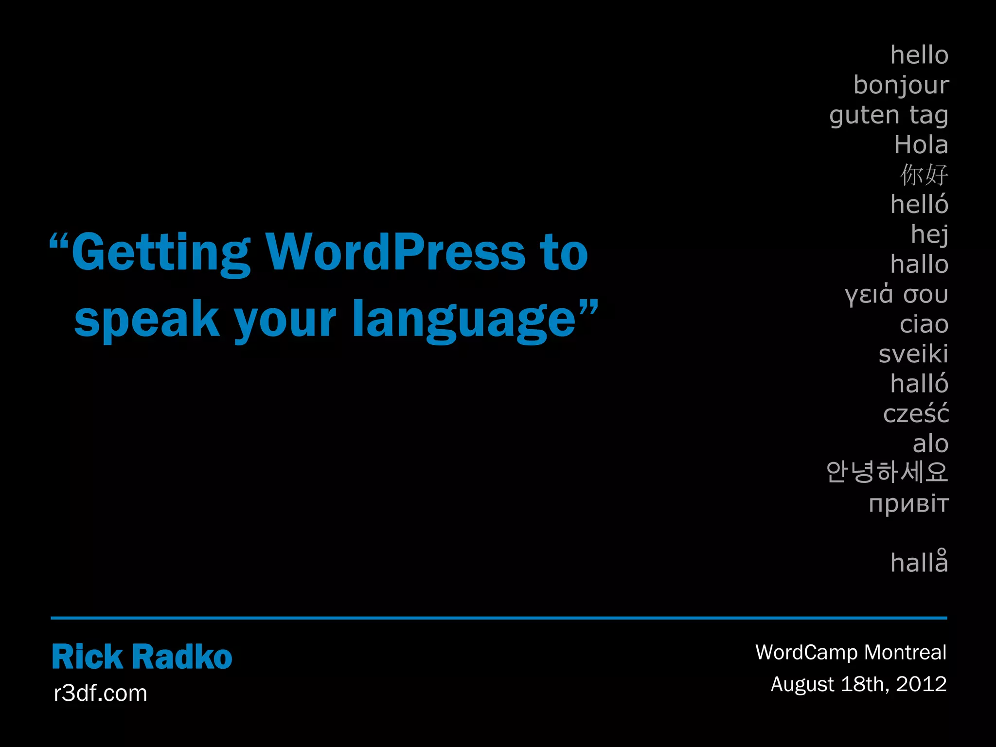 The document discusses creating multilingual WordPress sites, emphasizing the importance of translating content and the software itself, using methods such as human translation or language files. It covers internationalization and localization processes, the significance of locales, and practical steps for installing WordPress in different languages. Additionally, it highlights resources and tools for managing language settings, including plugins and methods for creating custom translations.