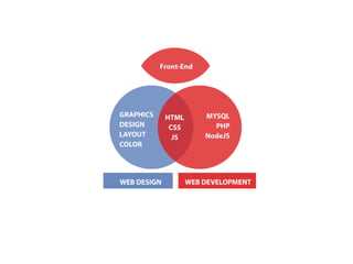 This document provides an overview of web application development. It defines web development as the work involved in developing websites for the internet or intranets, ranging from simple static sites to complex dynamic applications. The document then describes the client-server model used for web applications and separates web development into layers including web design, front-end development, back-end development, web servers, databases, and programming languages like PHP.