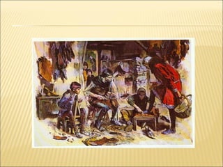 De man =rok, hemd, gordel, kniebroek, kousen De vrouw = lang hemd met mantel Blootvoets Grauwe zelfgesponnen stof = De Middeleeuwen