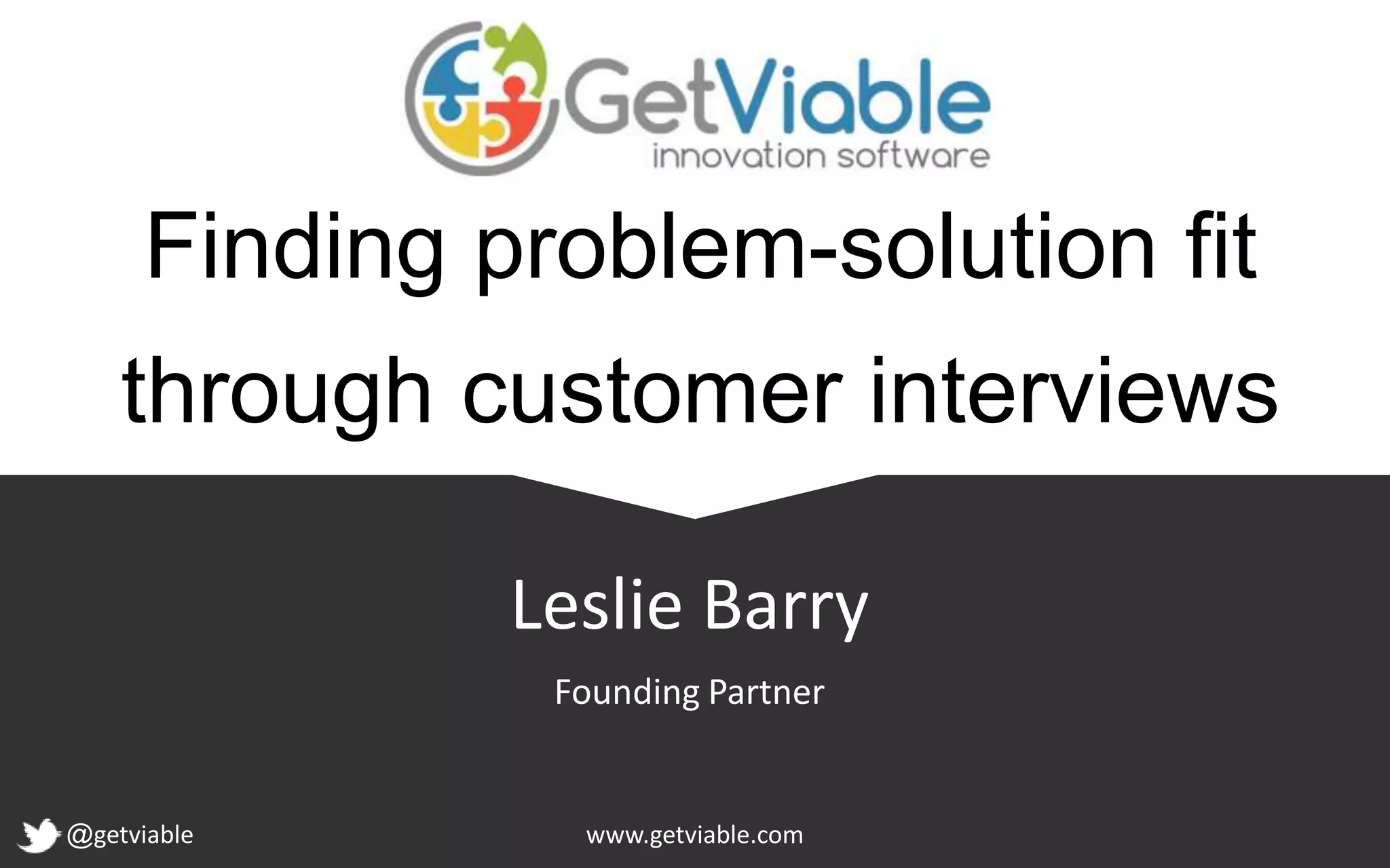 The document discusses finding problem-solution fit through customer interviews, emphasizing the importance of identifying customers and confirming their needs before developing a solution. It suggests that learning from customers is crucial and provides tips for effective interviews, recommending a face-to-face approach with a significant number of participants. Additionally, it references influential works like 'The Lean Startup' and highlights the significance of defining essential features and the willingness to pay as key steps to building a viable business.