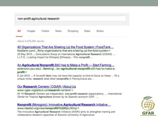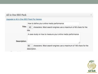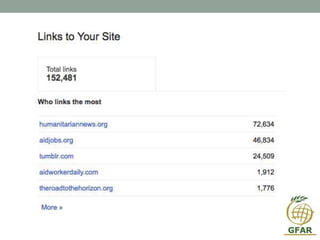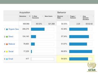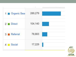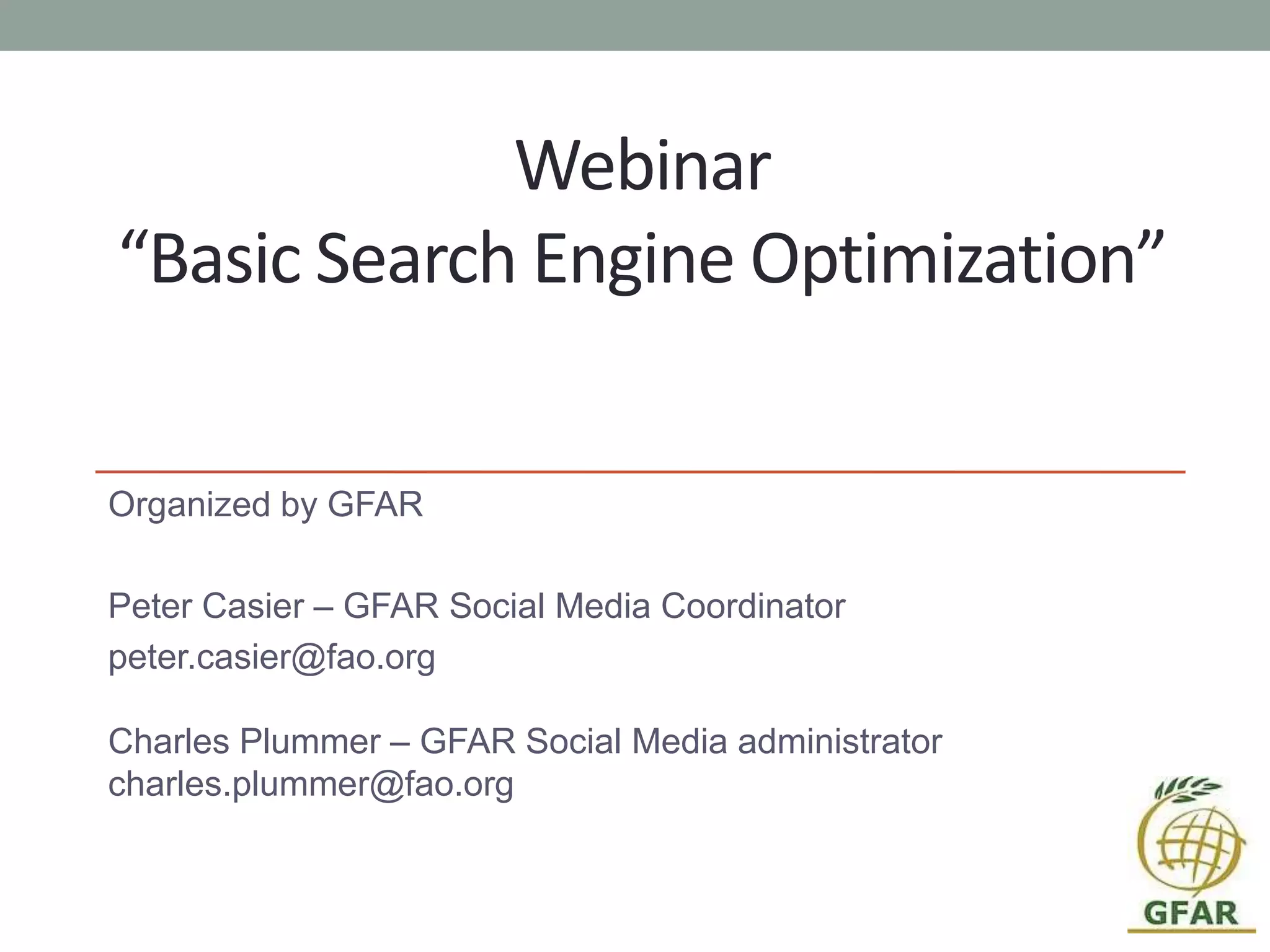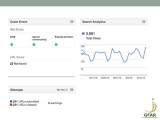 This document summarizes a webinar on basic search engine optimization. The webinar covers: why search traffic is important, how to check your site's search traffic statistics, how Google ranks content based on on-page and off-page SEO factors like links and keywords, and tips for improving search results such as submitting the site to Google Webmaster and optimizing content, pages, and images. The goal is to turn accidental first-time visitors into returning visitors through good webmastering skills like internal links, navigation, and engaging content.