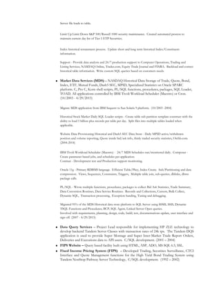 Gary Fox is an Oracle PL/SQL and SQL Server TSQL developer with 28 years of experience developing applications for financial markets. He has extensive experience developing high-speed data loading applications using technologies like Oracle SQL Loader, SQL Server BCP, and SSIS. He has also worked on migrations between Oracle, SQL Server, and other databases. His background includes developing market data storage, trading, and compliance systems for NASDAQ using technologies like PL/SQL, TSQL, SQL Server, and Oracle.
