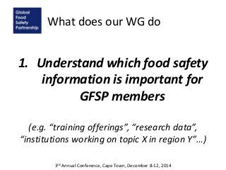 GFSP Knowledge and Learning Systems WG: towards a food safety information sharing framework and platform