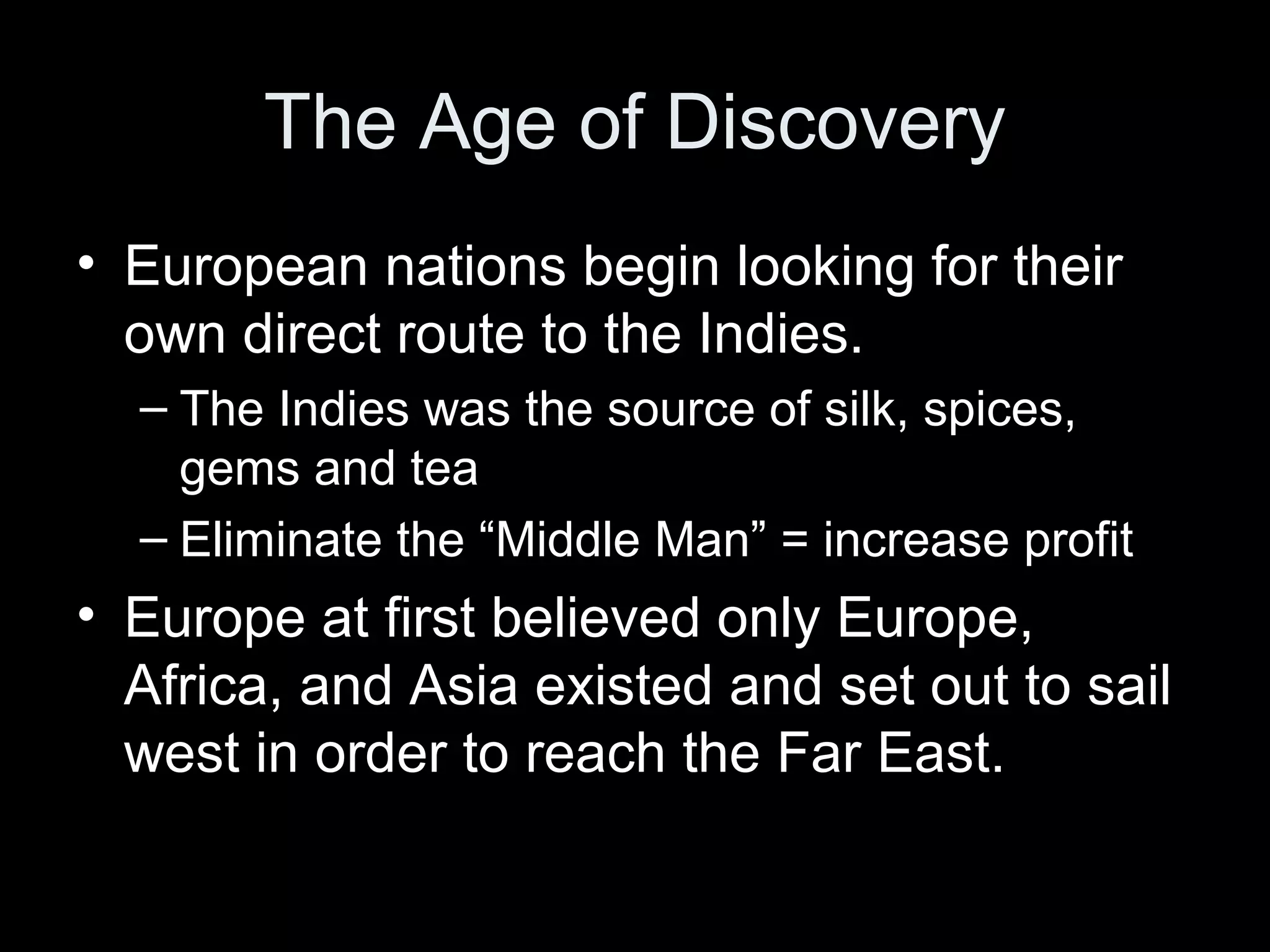 Europeans began exploring routes to Asia in the late 15th century to bypass Middle Eastern traders and gain direct access to valuable goods. In 1492, Christopher Columbus landed in the Americas while seeking an eastern trade route, believing he had reached Asia. Subsequent European powers like Spain, Portugal, France, and England laid claim to parts of the newly discovered lands and competed for control and resources. By the early 18th century, England had established several colonies along the eastern coast of North America, including the colony of Georgia in 1732.