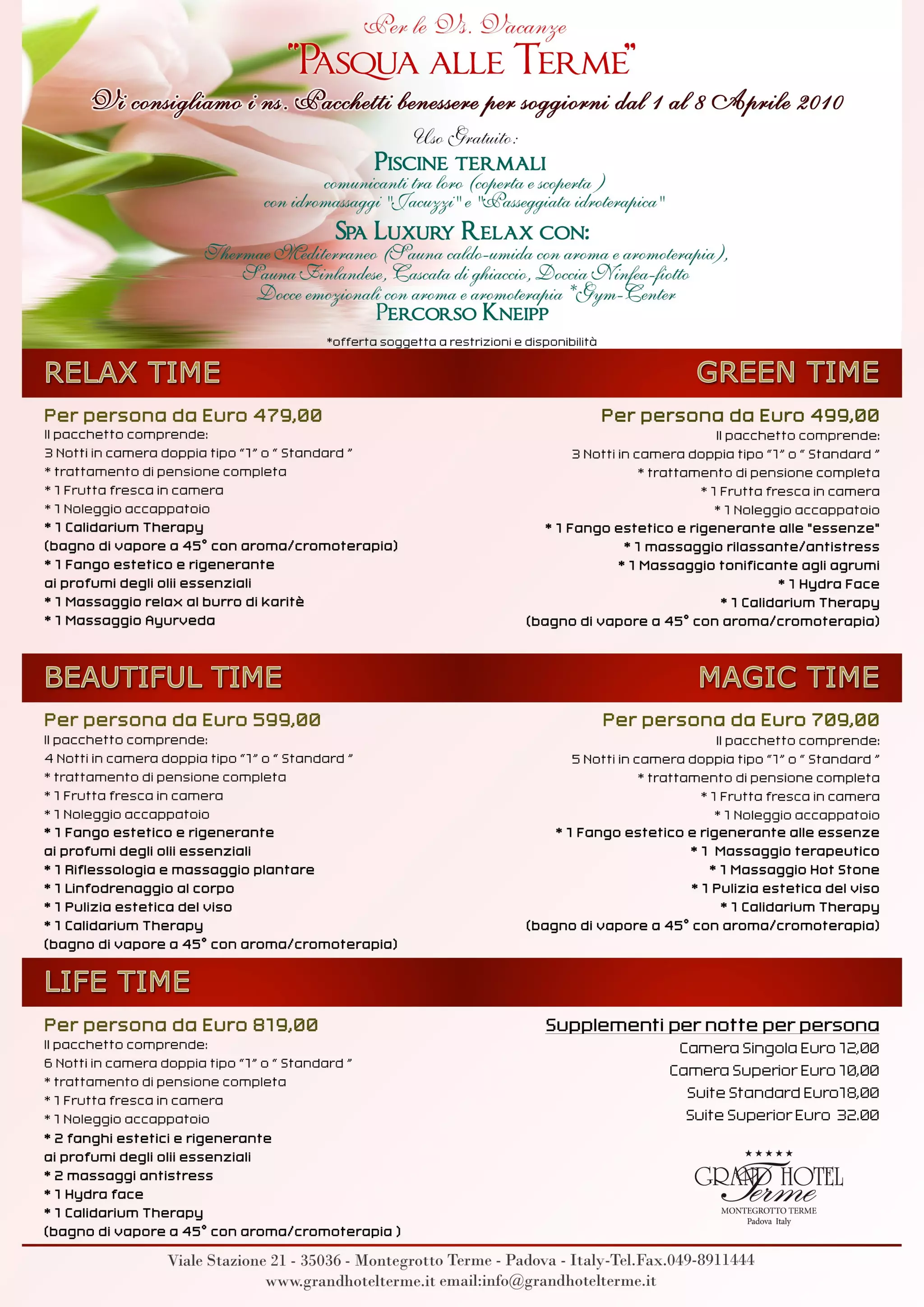 Listino Russo 2010 Grand Hotel Terme ВСЁ ДЛЯ ИДЕАЛЬНОГО ОТПУСКА ИЛИ КАНИКУЛ