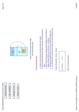 Tài liệu hướng dẫn quy trình sử dụng phần mềm Ghost để sao lưu và phục hồi dữ liệu từ ổ đĩa cứng. Nó mô tả các bước cần thiết để gán phân vùng thành file ảnh và các thiết lập cần thiết cho quá trình này. Ngoài ra, tài liệu cung cấp thông tin về cách xử lý các phần mềm liên quan đến việc ghost dữ liệu.