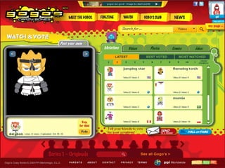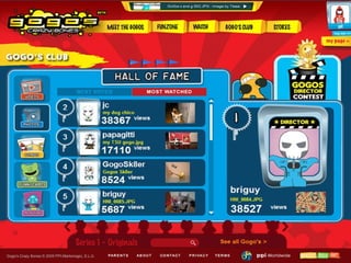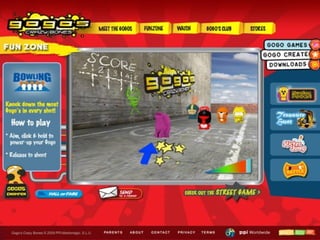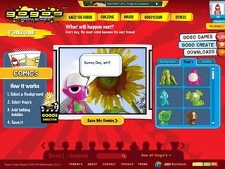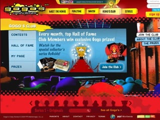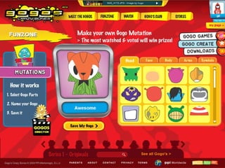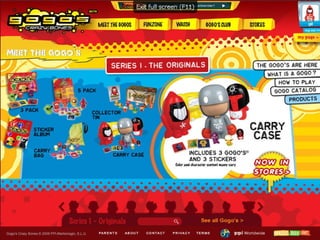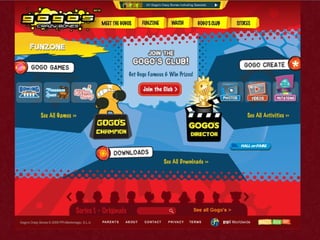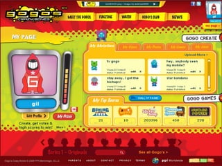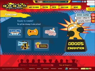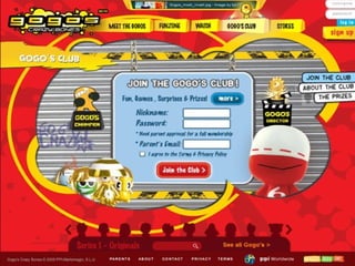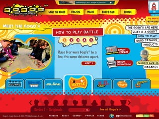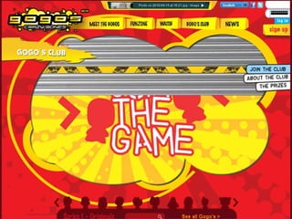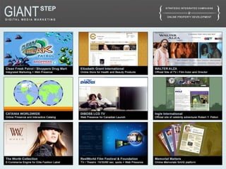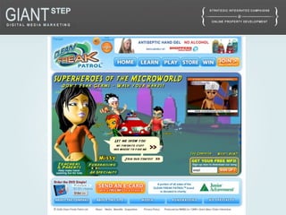 This document summarizes Giant Step's approach to digital marketing. It discusses using online experiences to engage audiences across digital platforms. Key aspects include creating branded online environments, designing them to be social and fun, integrating with social media, continuously interacting with audiences, and learning from the experiences. Technology, marketing, and design must be integrated to provide ongoing meaningful experiences. This involves activities, incentives for participation, managing user generated content and data, and adjusting strategies based on engagement levels. An example of their work with Gogo's Crazy Bones is provided, where they created an online club to drive regular visits, sharing, and user participation.