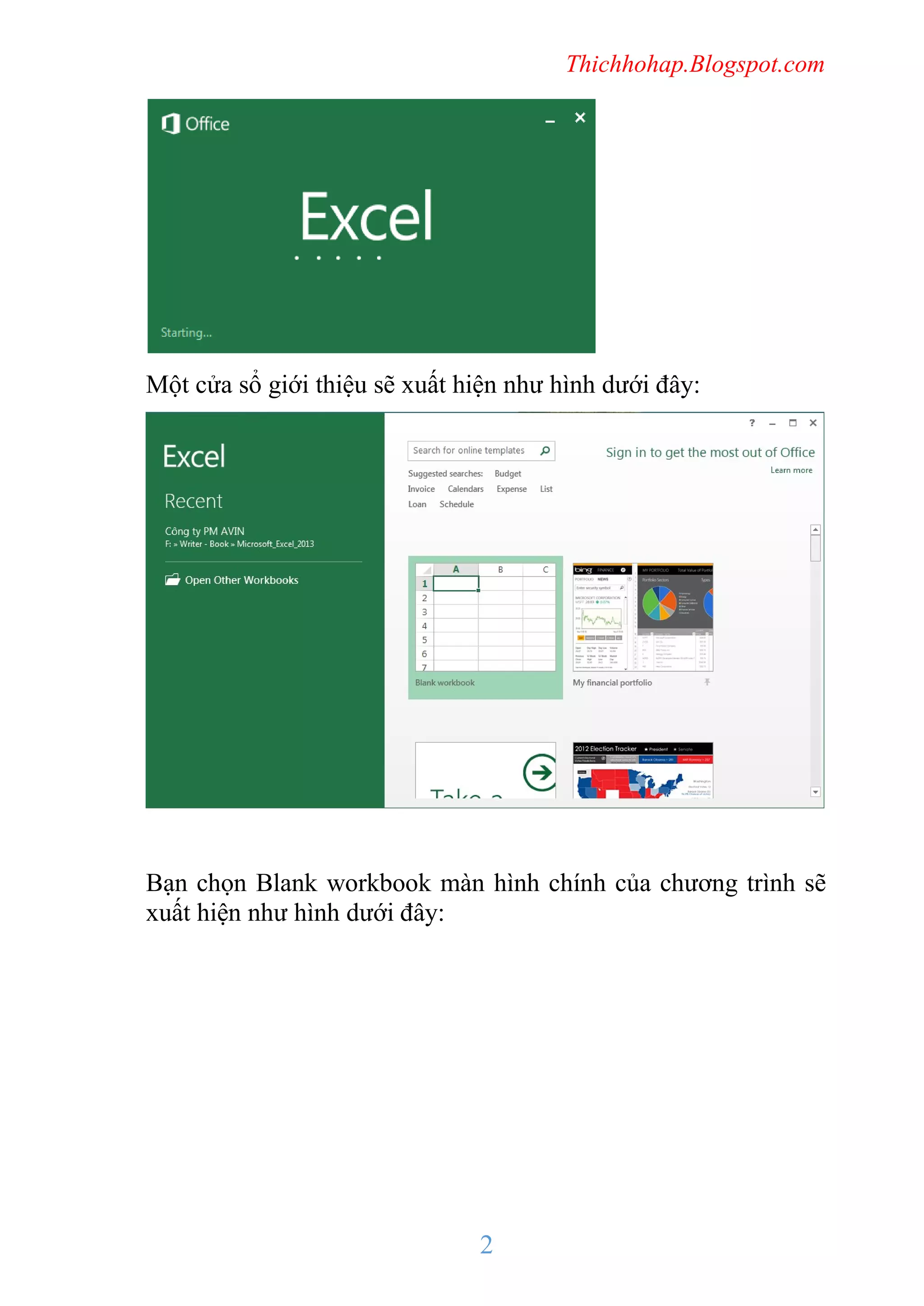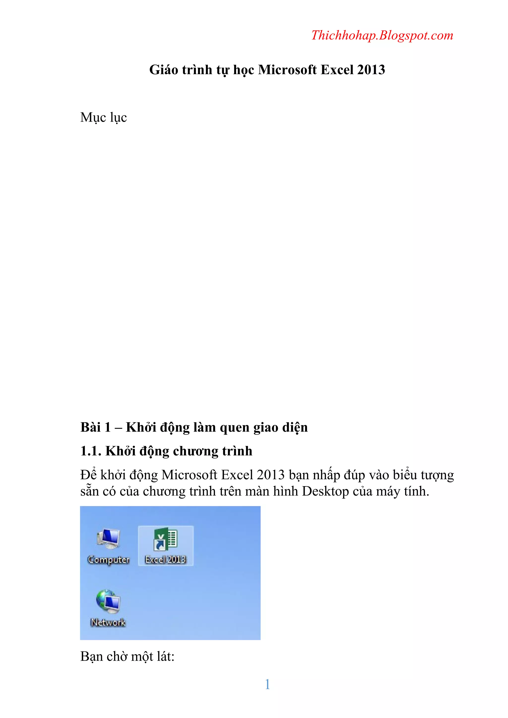 Tài liệu hướng dẫn sử dụng Microsoft Excel 2013, bao gồm cách khởi động chương trình, làm quen với giao diện người dùng và các thành phần của bảng tính như thanh công cụ ribbon, thanh công cụ nhanh, và office button. Người dùng sẽ học cách tạo bảng tính mới, nhập liệu và sử dụng các lệnh cơ bản trong Excel. Tài liệu cũng mô tả chi tiết về cách tùy chỉnh thanh công cụ để nâng cao hiệu quả sử dụng.