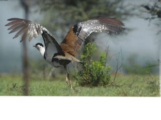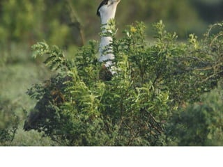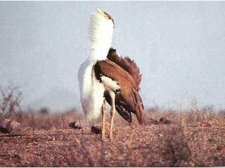 The document discusses the Great Indian Bustard, a large ground-dwelling bird found in India. It was presented by Rajendra Nale, a Forest Officer from Malshiras. The presentation covered information about the male and female Great Indian Bustard.