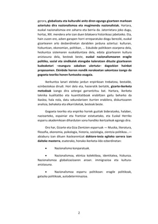 -- Ikerketara bideratutako masterra (Nazionalismoa XXI. Mendean