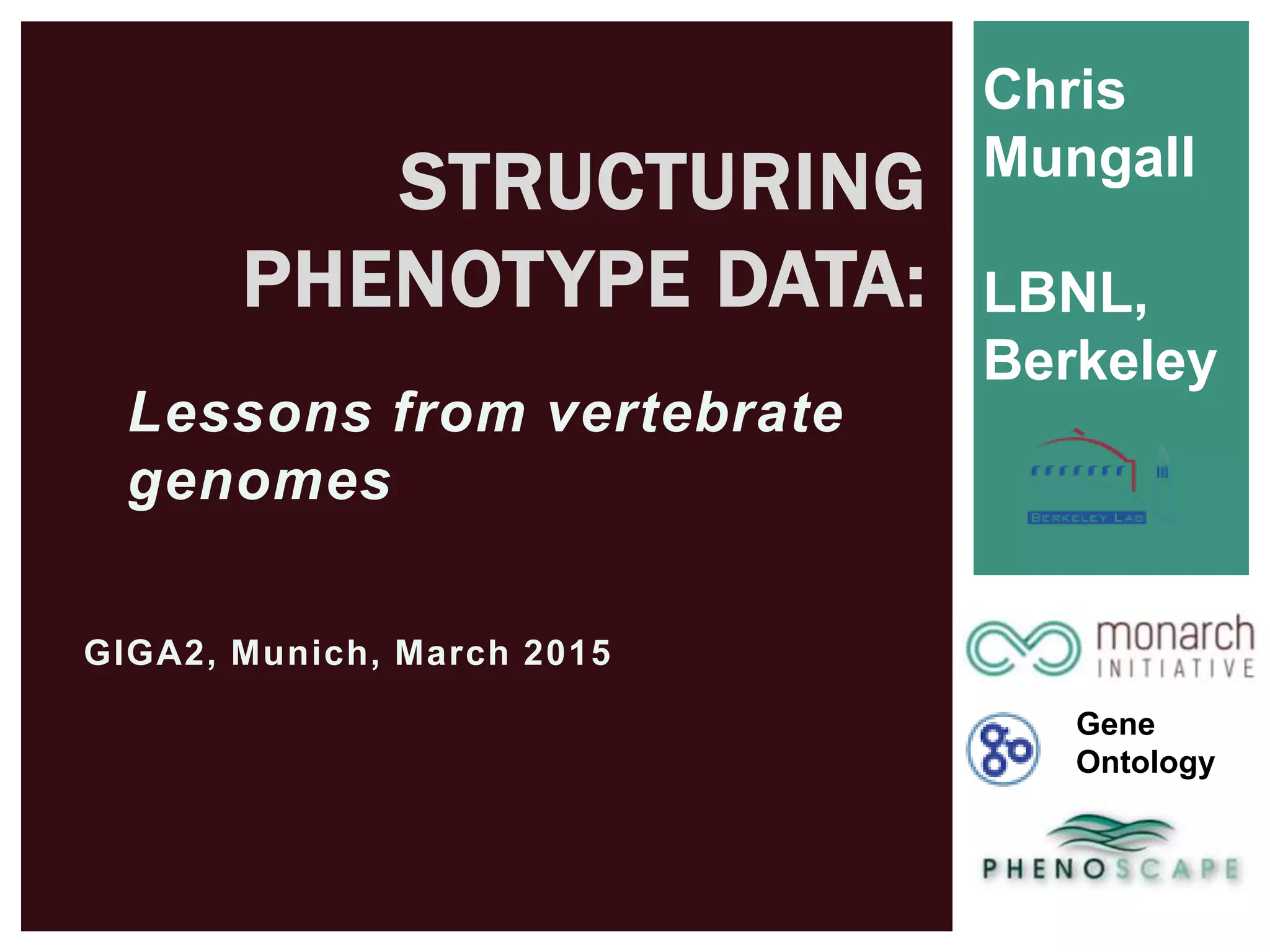The document discusses the integration of genetic and phenotypic data through the use of ontologies, emphasizing the importance of structuring phenotype information for comparative biology. It highlights various ontological tools and databases that facilitate the analysis of gene expression, evolutionary relationships, and the application of standardized vocabularies for research. Key resources mentioned include the Gene Ontology, Uberon, and Phenoscape, which are pivotal for organizing biological knowledge across species.