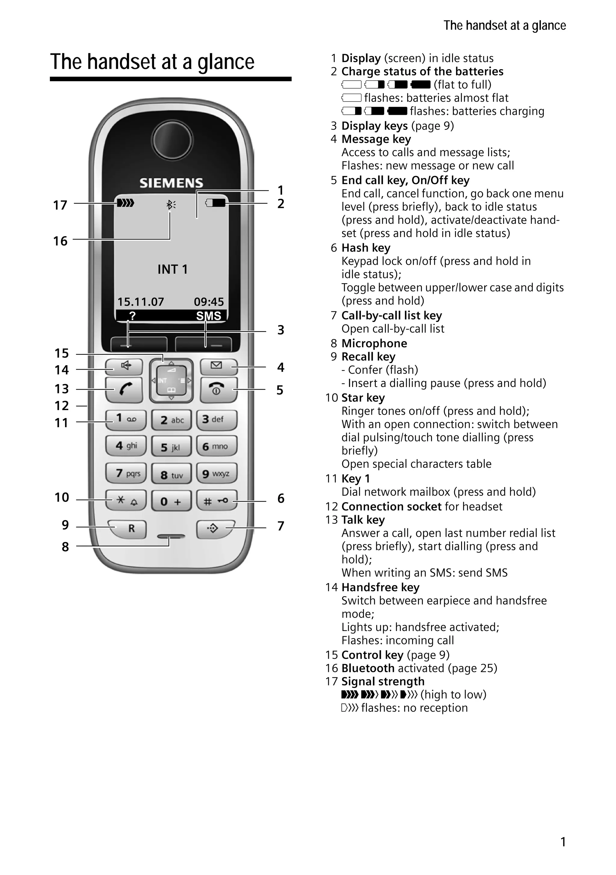 This document provides instructions for setting up and using a Gigaset S68H cordless phone. It describes unpacking the contents, inserting the batteries, attaching the belt clip, and registering the handset to a base station. It also provides an overview of the handset keys and display screens. The document contains information on making calls, using directories and lists, Bluetooth functionality, settings, and additional features accessible through the PC interface.