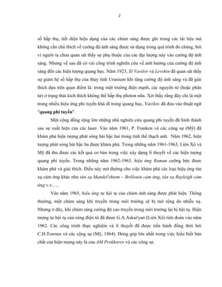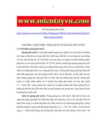 Quang phi tuyến là một nhánh của quang học nghiên cứu sự tương tác của chùm ánh sáng cường độ cao với môi trường, dẫn đến nhiều hiện tượng quang học mới như phát sóng hài và tự hội tụ. Các nghiên cứu về quang phi tuyến đã phát triển mạnh mẽ từ sự ra đời của laser, với nhiều ứng dụng thiết thực trong công nghệ và vật lý. Hiện tượng phi tuyến xảy ra khi cường độ ánh sáng đủ lớn để làm thay đổi tính chất quang học của vật liệu, gây ra các hiệu ứng như biến đổi chiết suất và phát sóng hài.