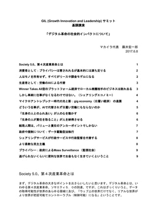 フロスト&サリバン主催「GILジャパン2017」の基調講演。「デジタル革命(第4次産業革命)の社会的インパクトについて」。 Keynote speech titled "Social Impact of Digital Transformation" at "Frost & Sullivan's GIL Japan 2017".