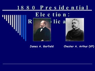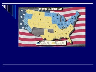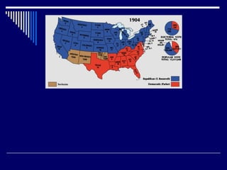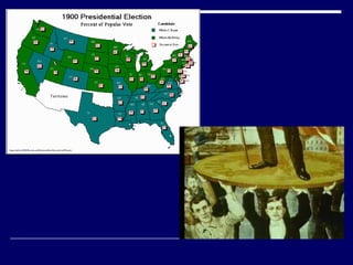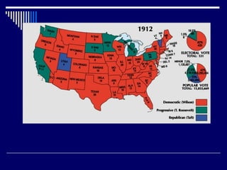 The document summarizes major events and political developments during the Gilded Age and Progressive Era in the United States, including presidential elections, reforms, and reformers who sought to address social and economic issues of the time. Key figures mentioned include Grover Cleveland, Theodore Roosevelt, Woodrow Wilson, Robert La Follette, Carrie Nation, and W.E.B. Du Bois. Major legislation passed included the Interstate Commerce Act, Sherman Antitrust Act, and women's suffrage through the 19th Amendment.