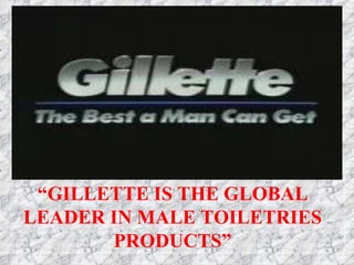 1. The document discusses Gillette, the global leader in male toiletry products. Gillette was established in 1901 and introduced the safety razor in 1904.