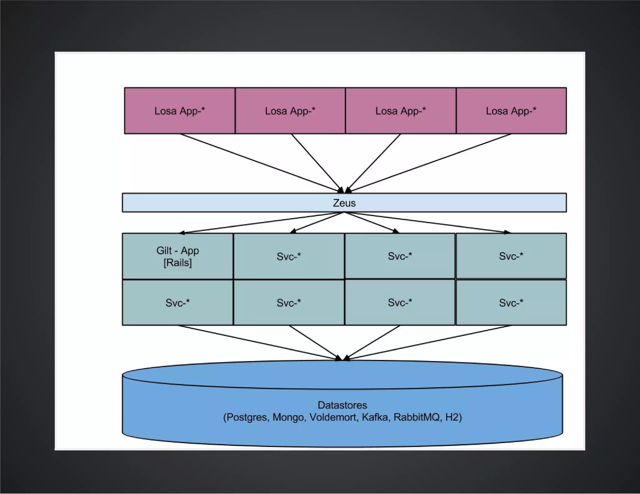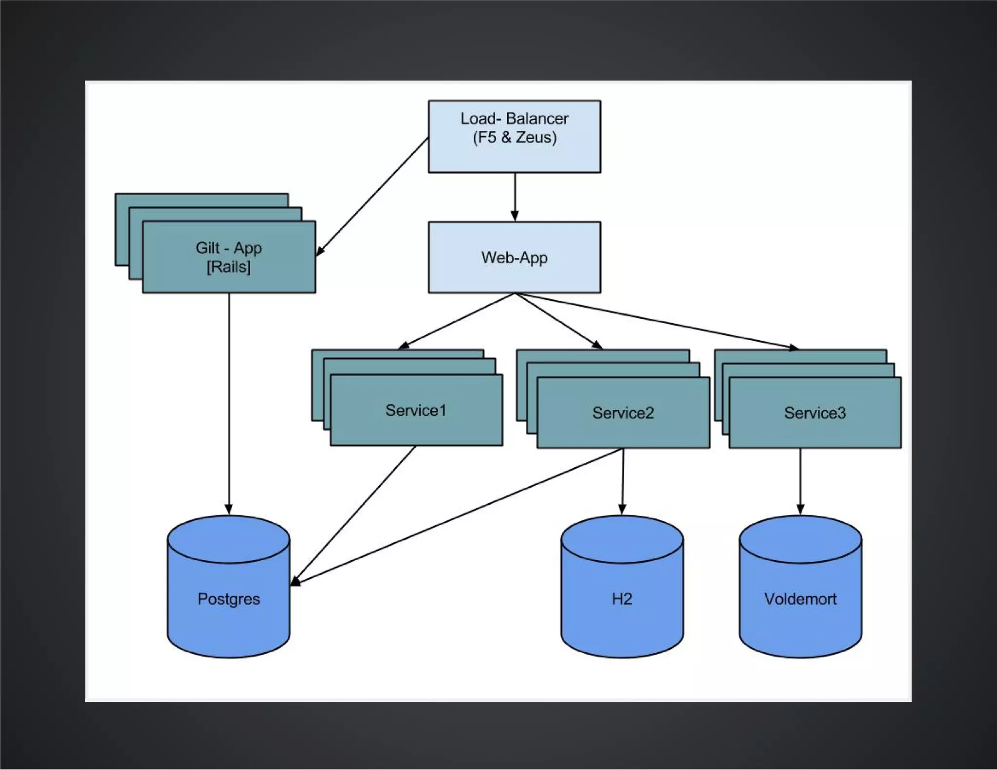 This document summarizes Yoni Goldberg's talk on Gilt's transition from a monolithic Ruby on Rails application to a distributed system of over 450 Scala microservices. Some of the key challenges they faced included scaling issues as traffic grew, difficulties deploying and testing changes across many interdependent services, and a lack of clear ownership over parts of the codebase. Gilt addressed these by moving to the JVM, embracing microservice architecture, using Docker for development environments, implementing automated testing and deployment tools, and emphasizing clear ownership of individual services.