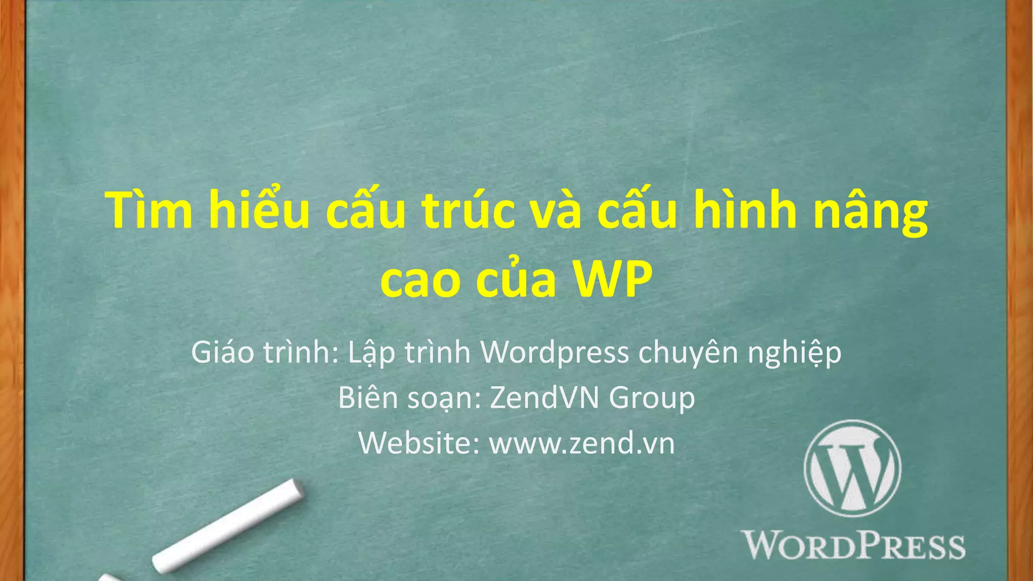 Tài liệu trình bày cấu trúc và cấu hình nâng cao của WordPress, bao gồm các thư mục chính và các tập tin cấu hình quan trọng. Nó cung cấp hướng dẫn chi tiết về cách thay đổi các tham số khác nhau trong wp-config.php để tùy chỉnh cài đặt WordPress, từ cách thiết lập địa chỉ URL đến cấu hình bộ nhớ và bảo mật. Các hướng dẫn cũng đề cập đến việc tối ưu hóa hiệu suất và quản lý dữ liệu người dùng trong môi trường đa trang web.