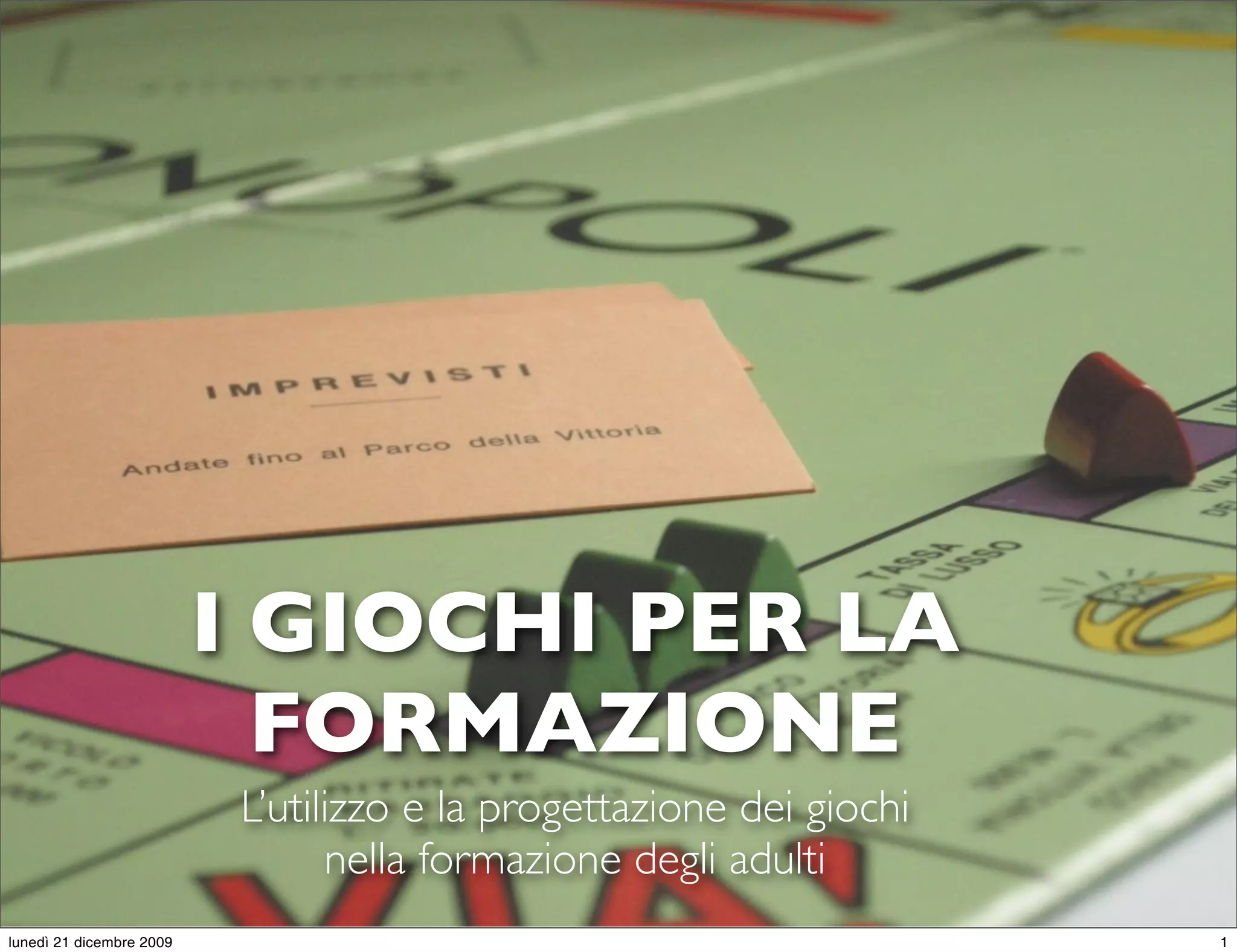 Il documento discute l'importanza dei giochi nella formazione degli adulti, evidenziando come possano facilitare l'apprendimento e la comunicazione. Viene presentato un programma di seminari dell'Associazione Formatori Professionisti che include esercitazioni pratiche. L'evento mira a fornire strumenti e risorse per migliorare le competenze dei formatori attraverso pratiche ludiche.