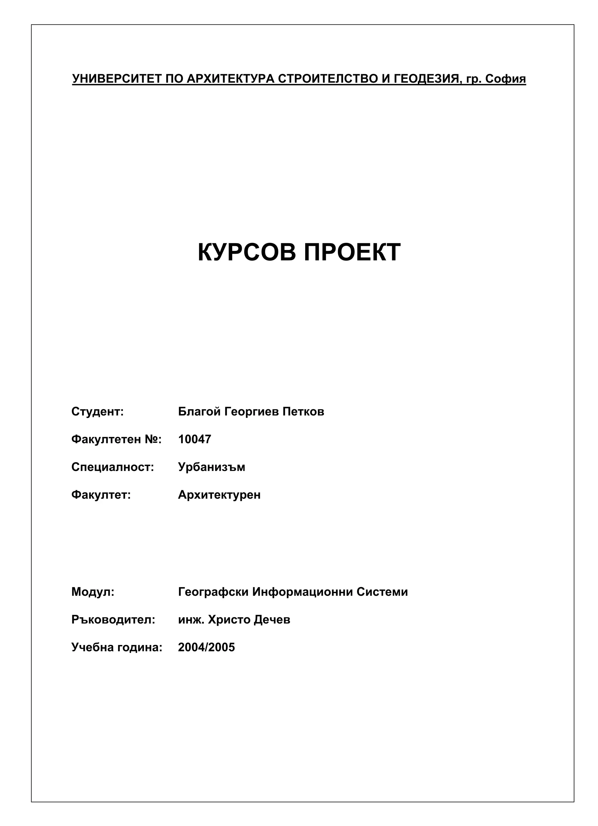 The module gets the students acquainted with methods and techniques for the collection, processing, storage and analysis of sociological data and their utilization in decision making. Skills towards practical application of GIS in town planning process are obtained. Attitude is shaped towards utilizing of information technology.