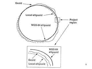 The document discusses the concepts and functions of Geographic Information Systems (GIS), focusing on spatial data modeling, geospatial referencing, and various transformations involved in GIS. It explains the roles of geodetic datums, ellipsoids, and coordinate systems in accurately representing geographical data, as well as the mathematical transformations needed to convert between different coordinate systems. The document also covers numerical coordinate transformations and techniques such as rubber sheeting and edge-matching for enhancing data accuracy in GIS applications.