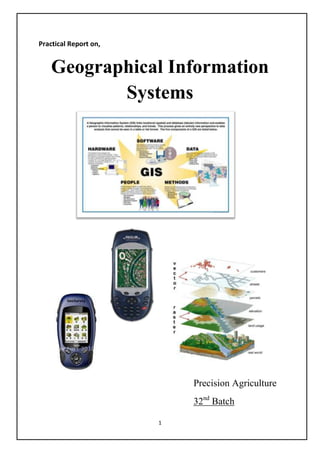 This document provides an overview of precision agriculture and the role of geographical information systems (GIS) in agriculture. It discusses how GIS allows storage, display, manipulation and analysis of geospatial data. A practical study is described where soil samples were taken from a field using GPS, analyzed for pH and EC, and entered into a GIS database to create maps showing spatial variation in these soil properties. The maps reveal differences in elevation, pH, and EC that can help inform crop selection and management practices tailored to different areas of the field.