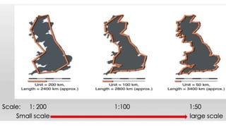 The document discusses the various spatial coordinate systems used for modeling the Earth's shape, including the use of ellipsoids and geoids for precise mapping. It covers the importance of matching datums when using geographic information systems (GIS) and describes different types of coordinate systems like geographic, projected, and Cartesian coordinates. Additionally, it explains map projections and their classifications, emphasizing that all projections introduce some degree of distortion, which can affect distance, area, and shape.