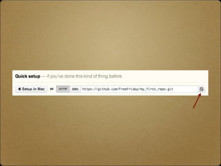 This document provides an introduction to using Git for source control management. It discusses what Git is, how to install it, how to initialize and commit changes to a local repository, and how to push those changes to a remote repository hosted on GitHub. The key steps covered are initializing a local repo with git init, staging files with git add, committing changes locally with git commit, adding a remote with git remote add, and pushing commits to the remote repo with git push.