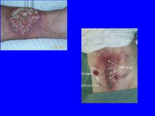 - Symptoms vary based on disease location but may include abdominal pain, diarrhea, bleeding, weight loss, and nutritional deficiencies. Extraintestinal manifestations are more common with Crohn's.