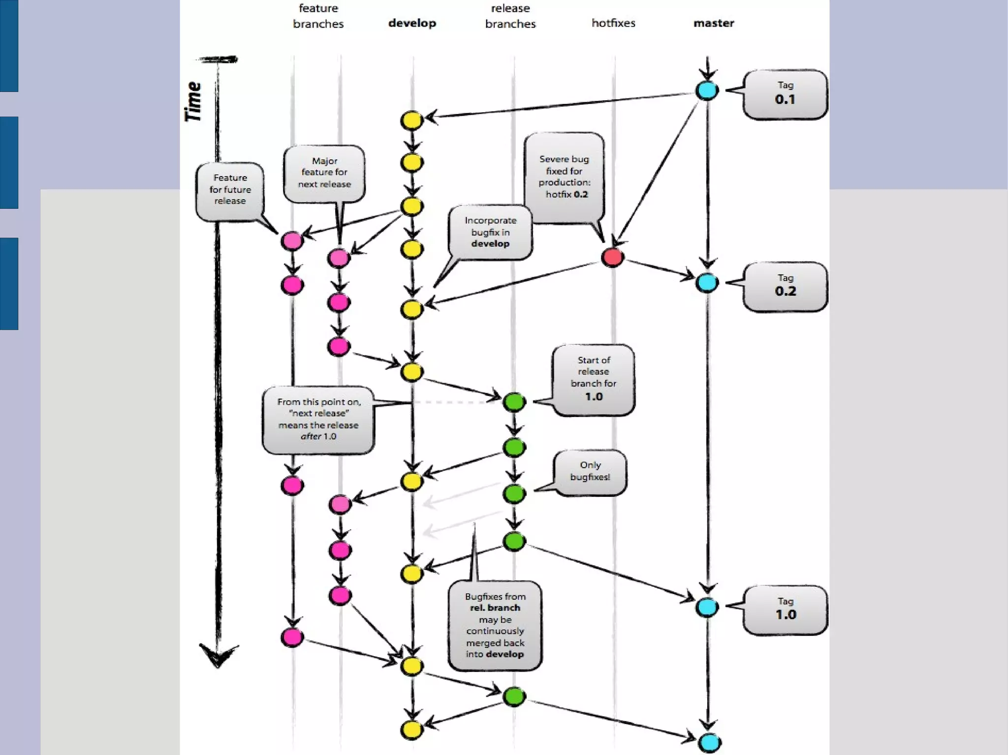 Документ описывает основы использования системы контроля версий Git, включая инициализацию репозиториев, работу с коммитами, создание веток и управление изменениями. Подчеркиваются важные правила, такие как регулярные коммиты и запрет изменений в ветке master, а также упоминаются лучшие практики для командной работы и разрешения конфликтов. Также обсуждается необходимость использования внешних сервисов для хранения репозиториев в случае увеличения команды разработчиков.