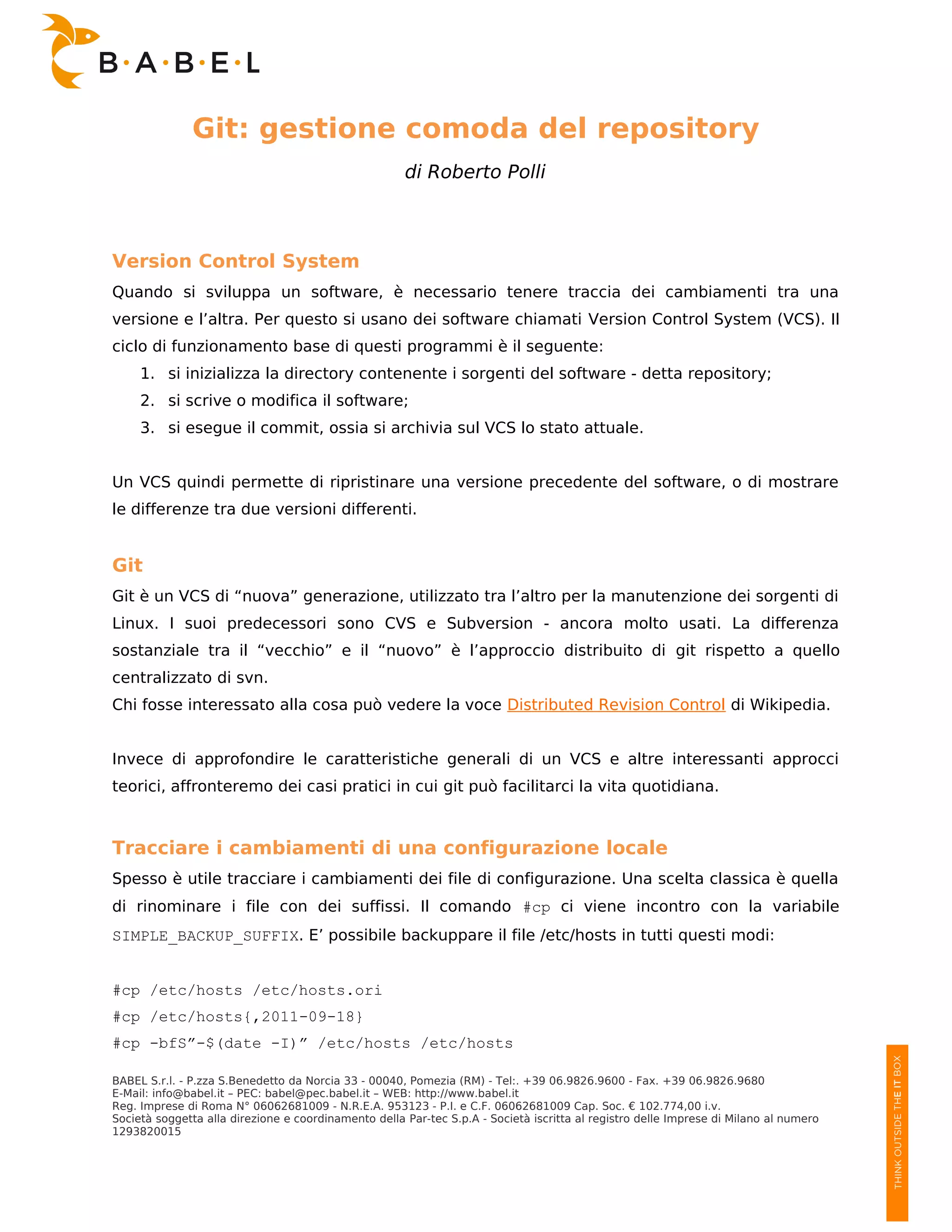Il documento descrive Git, un sistema di controllo versione distribuito, evidenziando la sua utilità nel tracciamento delle modifiche nel codice sorgente. Viene spiegato il processo di creazione di un repository, l'aggiunta di file, e l'uso di branch per gestire lo sviluppo di funzioni in modo isolato. Inoltre, si discutono comandi pratici per le operazioni comuni e vengono forniti esempi su come gestire le modifiche e risolvere eventuali conflitti.
