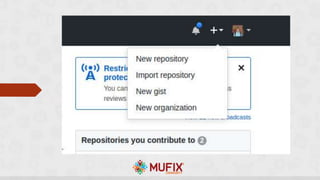 Git is an open source, distributed version control system designed for speed and efficiency. It allows users to install Git on Windows or Linux and then configure Git with their username and email. Basic Git commands include git init to initialize a repository, git status to check the status of files, git add to add files, and git commit to commit changes with a message. Github is a hosting service for Git repositories that allows users to push repositories to Github from their local machine and clone repositories from Github to their local machine.