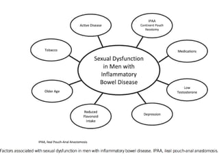 - Sexual dysfunction and infertility are more prevalent in men with IBD compared to the general population.