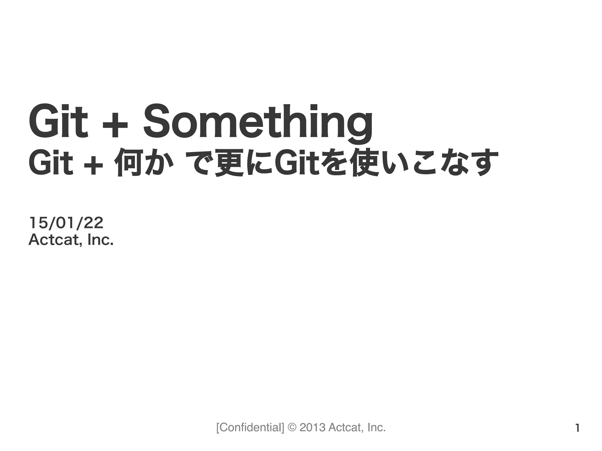 Actcat, Inc. 15/01/22 Actcat, Inc. Git + Something Git + 何か で更にGitを使いこなす 1